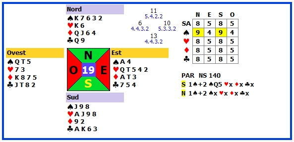 | 1 | 2♠ +1 | N | ♥2 | 140 | 102 |