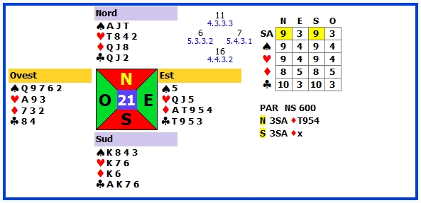 | 9 | 3SA | S | ♦2 | 600 | 103 |