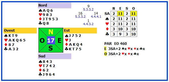 | 11 | 3SA +2 | E | ♣4 | 460 | 105 |