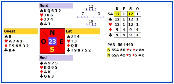 | 6 | 3SA +2 | S | ♦3 | 660 | 103 |