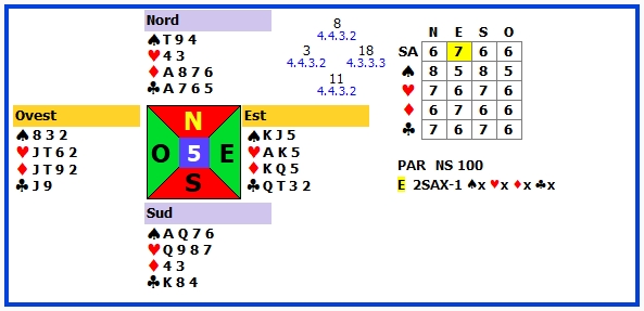 | 6 | 1SA -2 | E | ♦4 | 100 | 111 |