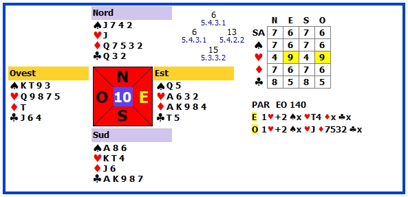 | 10 | 2♦ -1 | E | ♣A | 100 | 111 |
