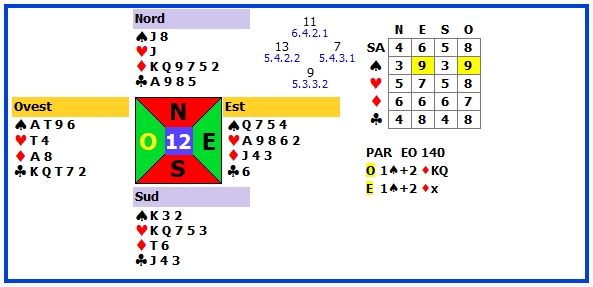 | 5 | 2♠ +1 | O | ♦K | 140 | 110 |