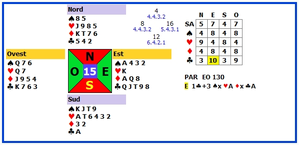 | 3 | 4♣ | E | ♥A | 130 | 105 |