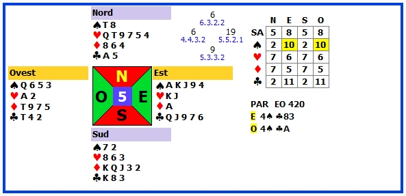 | 3 | 4♠ +1 | E | ♦K | 450 | 108 |