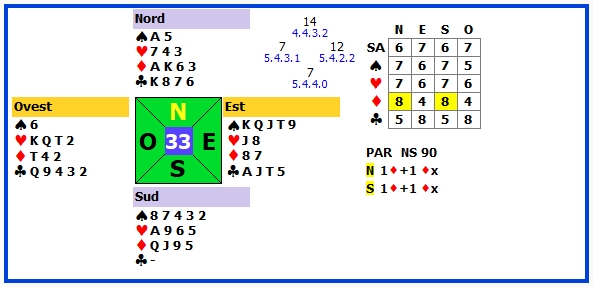| 4 | 4♣ -2 | E | ♦Q | 100 | 103 |