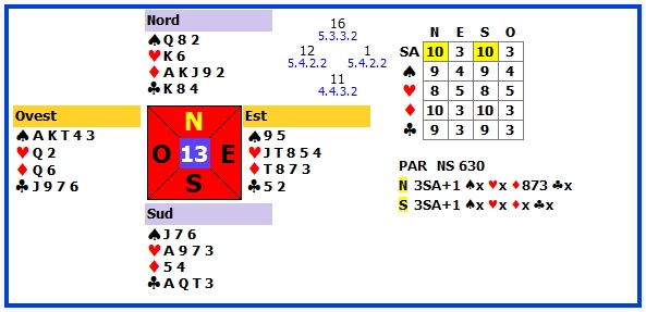 | 1 | 3SA +1 | N | ♥5 | 630 | 107 |