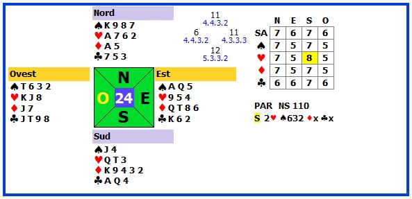 | 2 | 1SA -2 | E | ♥3 | 100 | 110 |