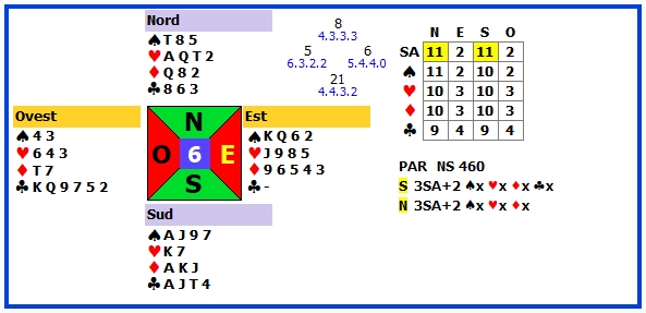| 6 | 3SA +2 | S | ♣K | 460 | 105 |