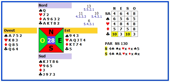 | 1 | 3♣ +1 | N | ♥A | 130 | 104 |