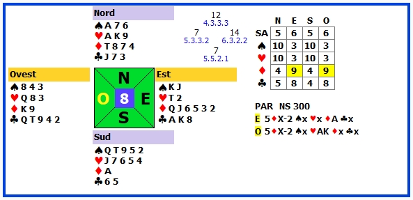 | 8 | 2♠ +1 | S | ♦K | 140 | 105 |