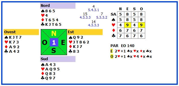 | 5 | 2♥ +2 | E | ♦3 | 170 | 105 |
