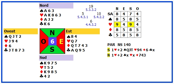 | 2 | 4♥ | N | ♦3 | 420 | 111 |