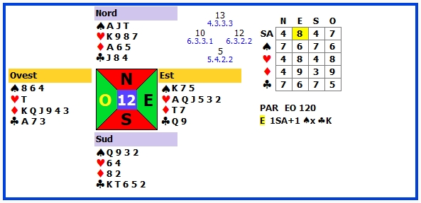 | 12 | 2♥ +1 | E | ♣2 | 140 | 111 |