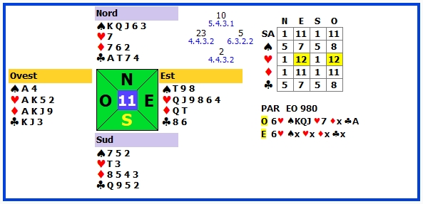 | 13 | 4♥ +2 | E | ♠2 | 480 | 110 |
